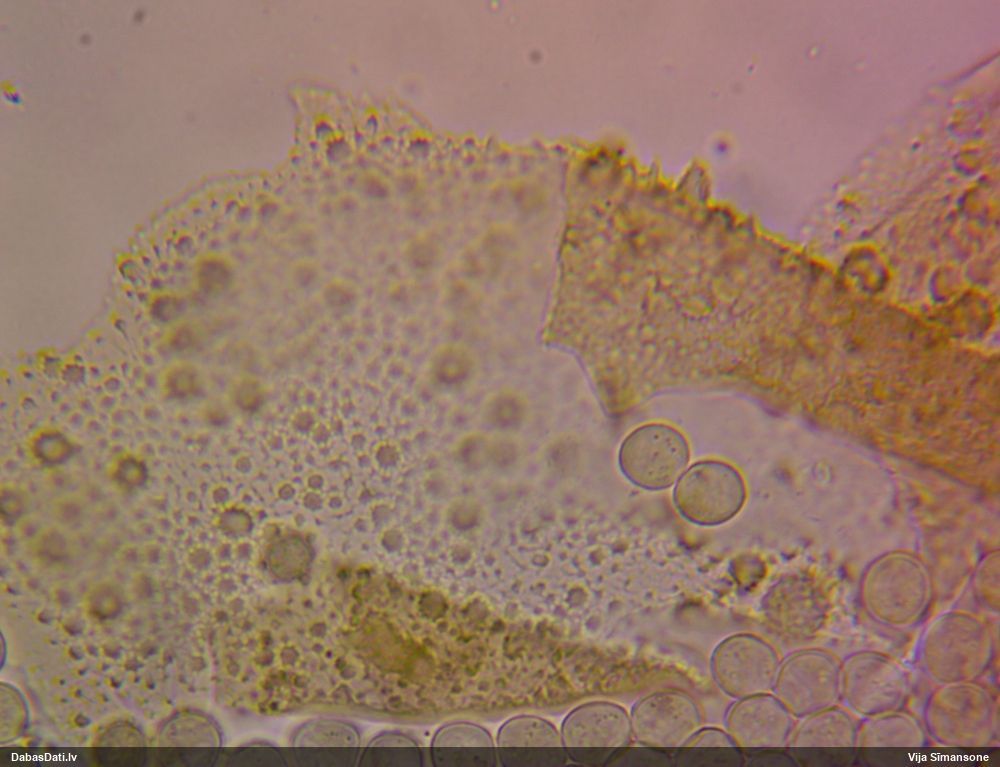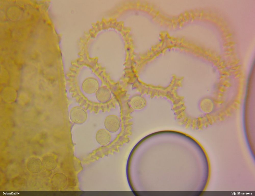 Iveta, izlocītajai ērkulītei sporām nav tīkliņa, te ir. Vismaz par šo sugu ir droši, ka nav. (Pēc ārējā paskata es ar šo versiju izskatīju)