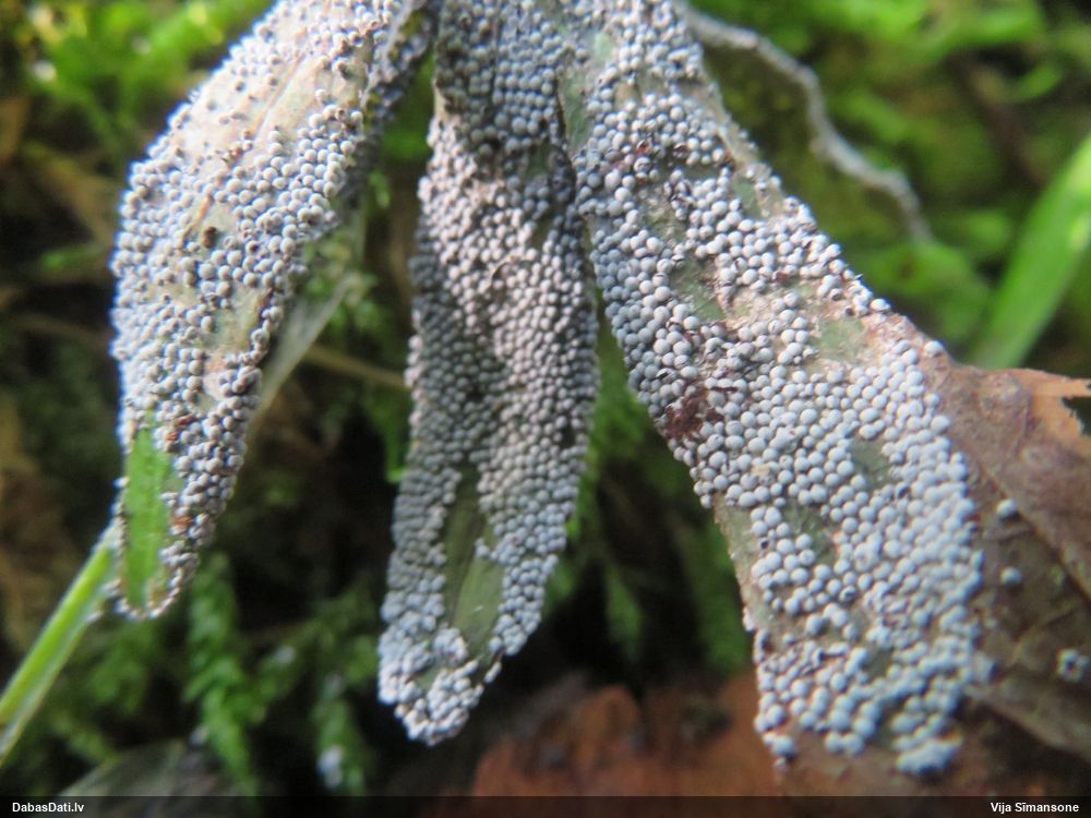 Mikroskopēju ievākto paraugu. Sporas pēc morfoloģijas un izskata atbilstošākas Physarum psittacinum, nevis Diderma tigrinum. Pašu sporu izmērs gan ir par lielu, salīdzot ar aprakstu. Kapilīcijs grieztajā paraugā netika novērots. Pie sevis domāju, vai iespējams kāds trešais variants, vai arī sporas ir deformētas..