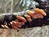 Šis varētu būt tāds piemērs, kad sāk dzīvi uz koksnes un tad uzplešas virsū sūnai. Man izskatās, ka šai vajadzētu būt rufai, nu tāds sarkans. Pat divi perīdiji 2. foto no apakšas tīri pārliecinoši - dzeltenais plānais un tad pa virsu malā var redzēt tumšo.