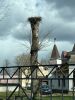 Kaimiņi apzāģēja koku un ligzda palika tik uz viena zara. Atlidoja stārķi un ligzda apgāzās. Tagad tiek veidota jauna. Vai ir kāda instance kas šādas apzāģēšanas liedz?