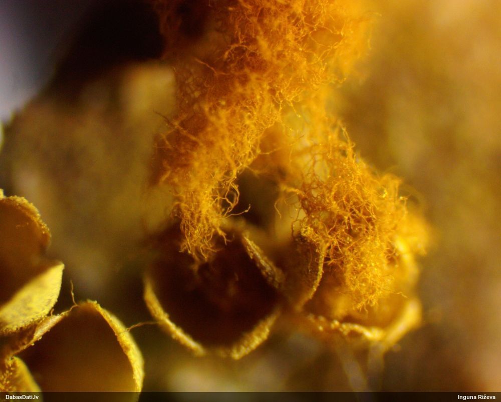 Mazie dzīves prieciņi! :) Lūk, pie kā noved cilvēku iedvesmošana uz gļotsēņošanu, nepieciešamas tikai pareizi iestatītas un sugu redzošas acis. Paraugs tika ķidāts ar pietāti, vēl ir pietiekami daudz materiāla. Atrašanai noteikti jāizmanto 40x lupa ar gaismiņu, bez tās neiztikt. Konkrētā sveķainā egle atšķīrās no visām pārējām, bija noliekusies 45 grādu lenķī, pasargāta no tiešiem nokrišņiem. Īpaša uzmanība jāvelta samtaini melnajam micēlijam, ar ko noklātas senas sveķainas rētas. Ja tiek ieraudzīti gļotsēnes augļķermeņi, tad viss uzreiz kļūst skaidrs. Tie ir pietiekami izteiksmīgi. Novēlu veiksmes visiem, kuri vēlas šo būtni ieraudzīt savām acīm! Vakar pārskatīju arī citas DMB audzes, tomēr bez sekmēm. Tomēr prasības pret dzīvotni nav gluži izšķirošas, Dānijā atrasta arī stādītās mono-audzēs. Jāturpina meklēt retās sugas :)