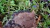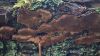 Uz trupējuša koka, pa daļai smiltīs kāpās. Piekopoju bildi. Sākumā pagāju garām, likās mandarīna miza.