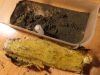 Atradu arī šo paraudziņu, pašā kastes apakšā. Perfekti notīrīta pakājes plēksnīte uz koksnes, viss pārējais ragansviests pārvērsts smalkā pulverī. Izdevās atrast arī nebojātas sporas.