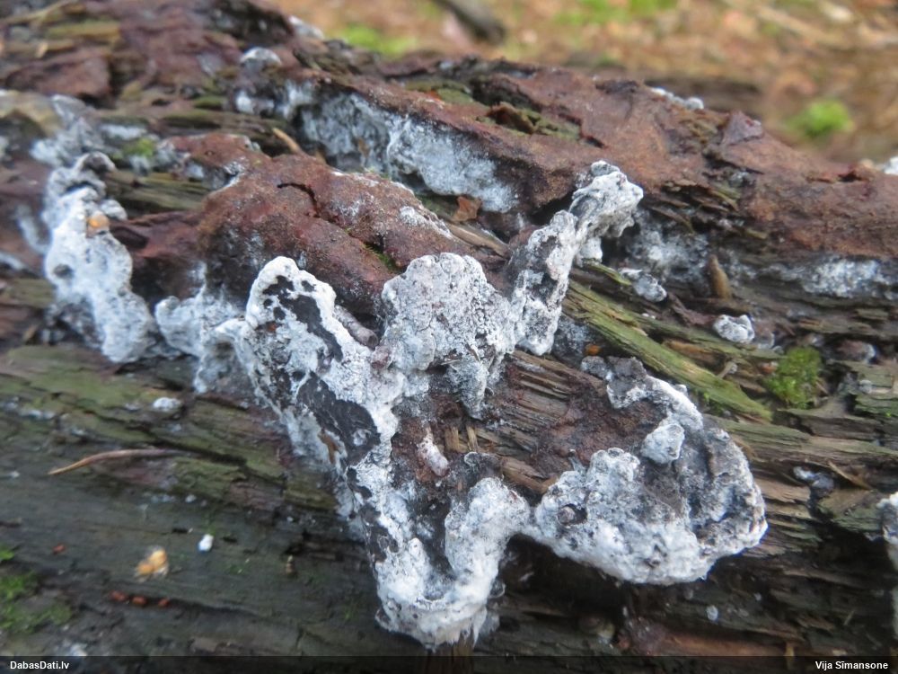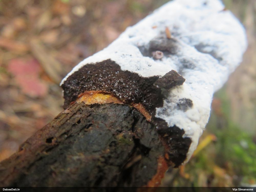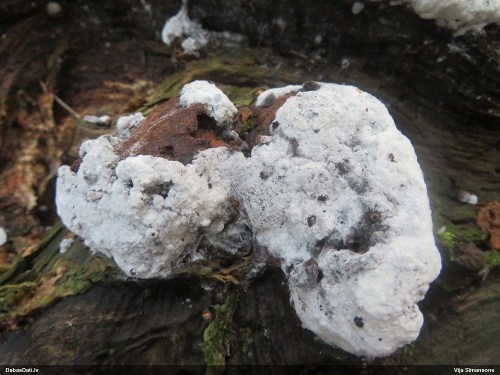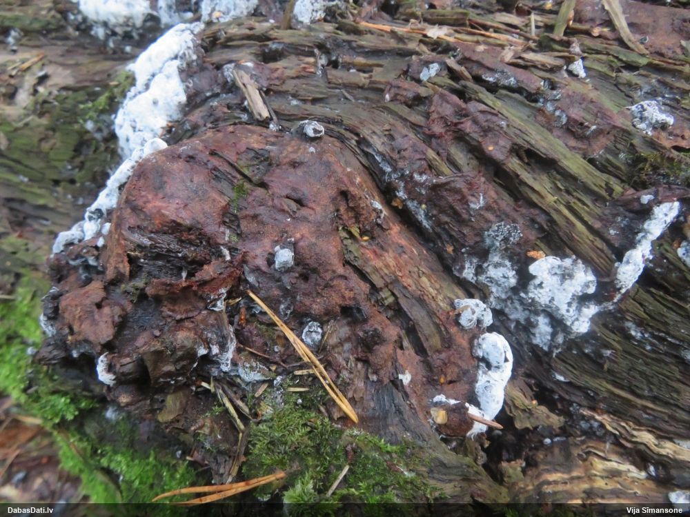 Šis varētu būt tāds piemērs, kad sāk dzīvi uz koksnes un tad uzplešas virsū sūnai. Man izskatās, ka šai vajadzētu būt rufai, nu tāds sarkans. Pat divi perīdiji 2. foto no apakšas tīri pārliecinoši - dzeltenais plānais un tad pa virsu malā var redzēt tumšo.