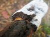 Šim vajadzētu būt licentii. Papildus tam, ka oktobris (rufas tipiski ir agrā pavasarī), sporu masa ir tumšbrūna (ne sarkanbrūna kā rufai), pakāje plaši stīgo (rufa, šķiet, nestīgo, tāda gluda neliela apmalīte), bet vēl arī tās baltās "pūciņas". Riskēju minēt, ka tas baltais ir kapilīcijs, jo licentii parasti ir bagāts ar kapilīciju, ka pirmā brīdī tāds izjucis izskatās kā sapelējis, bet nav.