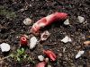 Pieliku vēl četrus foto: augļķermeņi no metāliskās krāsas paliek brūni; atradu kaut ko līdzīgu kolumellai, bet stiprāk uzpūšot tā "lodīte" izvēlās arā, atstājot iedobi; kātiņa galā palika neliels paplatinājums.