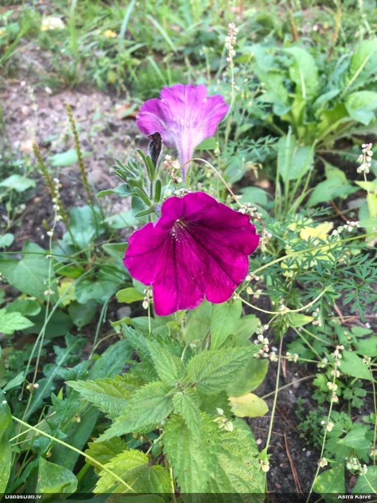PiezīmesPilna mežmala ar dažādu krāsu petūnijām. Iespējams kāds izmetis dārza atkritumus un tā vińas tur izsējas un pāriet savvałā.