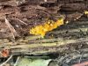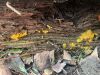 Man pēkšņi radās ideja - vai tur bija nu ļoti mitrs mikroklimats, egle ar melnalksni? Hipotētiski tādas dzeltenas var būt Diachea muscorum. Te bilde ir mazliet līdzīga: https://fr.wikipedia.org/wiki/Fichier:Craterium_muscorum,_Trawscoed,_North_Wales,_Aug_2016_-_Flickr_-_janetgraham84.jpg