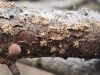 Cauri daudziem foto stiepjas tievi pavedieni (neskaitot to resno striķi), vajadzētu tiem labāku tuvplānu - vai uz tiem nav bumbuļveida paresninājumi dažās vietās. Resp., jāsaprot, vai tie ir sēņu pavedieni, vai kapilīcijs. Mizas sveķenīti es tā pārliecinoši neesmu mikroskopējusi. Nezinu, vai tai var būt līdzīgas sporas kā mainīgajai sveķenītei, bet mizas sveķenītei sporas mazliet grupējas (to var nepamanīt) un galvenais - tai ir tādi tievi gludi kapilīcija pavedieni ar maziem bumbulīšiem.
