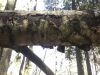 Satrūdējusi kritala mežā, nav dēļi. Iespējams, egle, jauktu koku mežs.