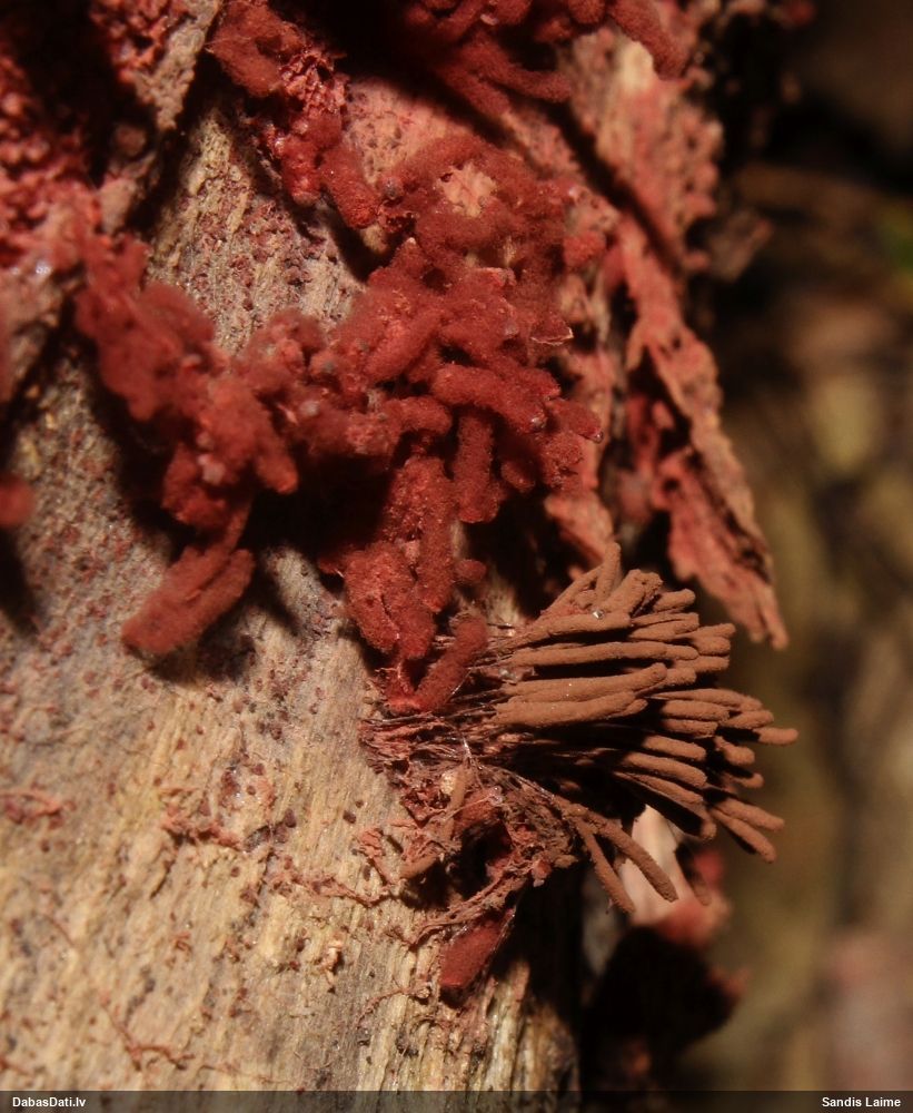 Nu vai tad šis nav Sorocybe resinae micēlijs, uz kura mēdz augt gļotsēne?