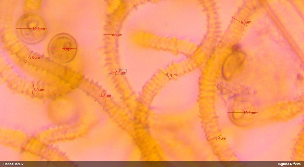 Nav pierakstīti sporu izmēri. Sporas netika mērītas?