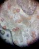 Žēl, ka mikroskopijā neviens kapilīcija mezgls (un vnk pavedieni) nav "aizķēries" (bet varbūt citos foto ir?), jo varētu būt F.licentii. Ovālo sporu gan jau arī netrūkst, kam šādā stadijā varētu arī nepievērst uzmanību un nesamērīt (bet būtu vajadzējis).
