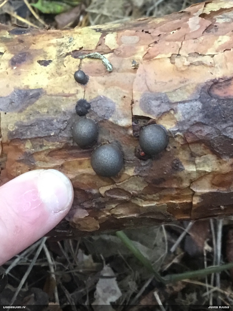 Šai es veltīju dienu ;). Pilnīgā izmisumā, nespējot izšķirties starp parasto P.leucophaeum un pasaulē reto P.robustum (Latvijā skaitītos 2. atradne; pirmo noteica Adamonīte no sena vākuma), ieliku lielajā FB grupā, kur diviem uzticamākajiem pētniekiem katram bija savs viedoklis ;)). Edvīns Norvēģijā P.robustum nav akceptējis, lai arī jaunībā pats tādu esot noteicis (netic savai noteikšanas pareizībai). Novērojuma foto un diskusija te: https://www.facebook.com/groups/SlimeMold/permalink/4130272293899264/