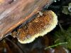 Šis varētu būt tāds piemērs, kad sāk dzīvi uz koksnes un tad uzplešas virsū sūnai. Man izskatās, ka šai vajadzētu būt rufai, nu tāds sarkans. Pat divi perīdiji 2. foto no apakšas tīri pārliecinoši - dzeltenais plānais un tad pa virsu malā var redzēt tumšo.