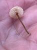 Vēl trīs foto: izdevās tīri labi izpūst sporas (kapilīciji nekur nebira); tad viegli uzsitu uz lielo bumbuli, kas acīmredzot ir tā hipokolumella - tas sadrupa, bet kapilīciji palika piestiprinājušies pie pseidokolumellas atlūzām; nu un pāri palika tas mazais paplatinājums kātiņa galā :) Julita, vai ir kāda versija par šīs lampītes sugu?