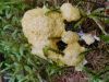 Šis ļoti interesants. Sporas ļoti traumētas, bet tām, kas ir veselas, ir diezgan skaidrs raksts, kas neatbilst nekam no man zināmiem ragansviestiem vai pumpurītēm (pat neņemot vērā izmēru), bet tīri labi atbilst baltapaļajai krāterītei, kas tā nevar būt, jo parauga "ciešais kamoliņš" ir stipri lielāks par tādu. Sporas pēc izmēra varētu atbilst Fuligo licentii, bet no dzeltenā te ir stipri maz. Ja vienīgi ir kāds nobriedušāka attēls, kas rāda, ka ir bijis dzeltens, bet no ilgas stāvēšanas izbalējis.