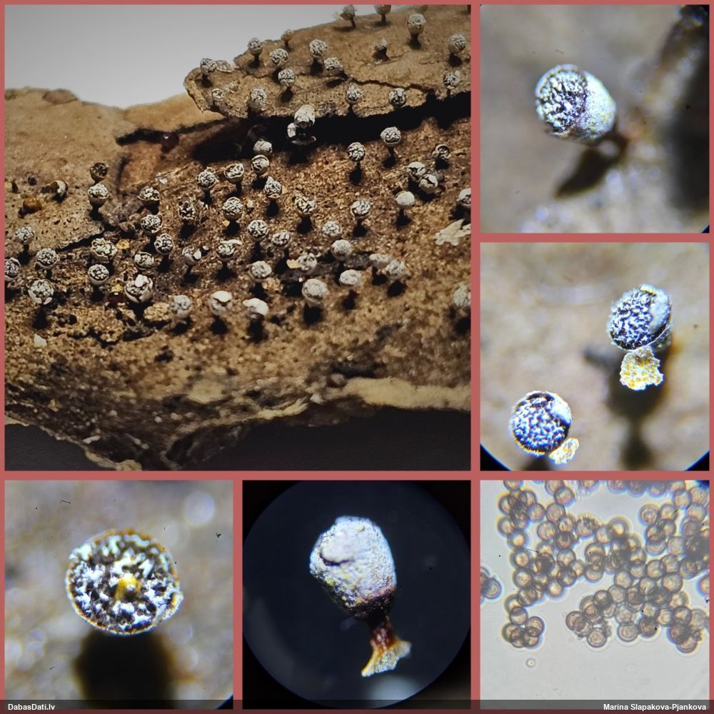 Šīm paraugs nav saglabājies? Nevaru saprast, vai sporas ir ar tīkliņu no adatiņām, vai ar līnijām. Īsti nesanāk neviena man zināma suga.