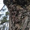 Skujkoks nav par tuvumā. Ir tikai lapu koki - lazda, kastanis, ābelītes. Otrpus celmam (D pusē) lejasdaļā, ko pamanīju pirmo, arī bija kaut kas no šim līdzīga, bet tik izsporojies, ka palicis tikai paliels brūns sporu pleķis. Intriga pavērot nākamgad.
