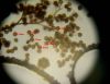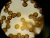 Un ja ir Badhamia, tad vajag arī uz stikliņa bez virsstikliņa mazos palielinājumos (lai nesaslapina okulāru) paskatīties, vai sporas negrupējas, pa divi vai vairāk. Te sporas izskatās ļoti apaļas, drīzāk negrupējas, bet paskatīties tāpat ir vērts.