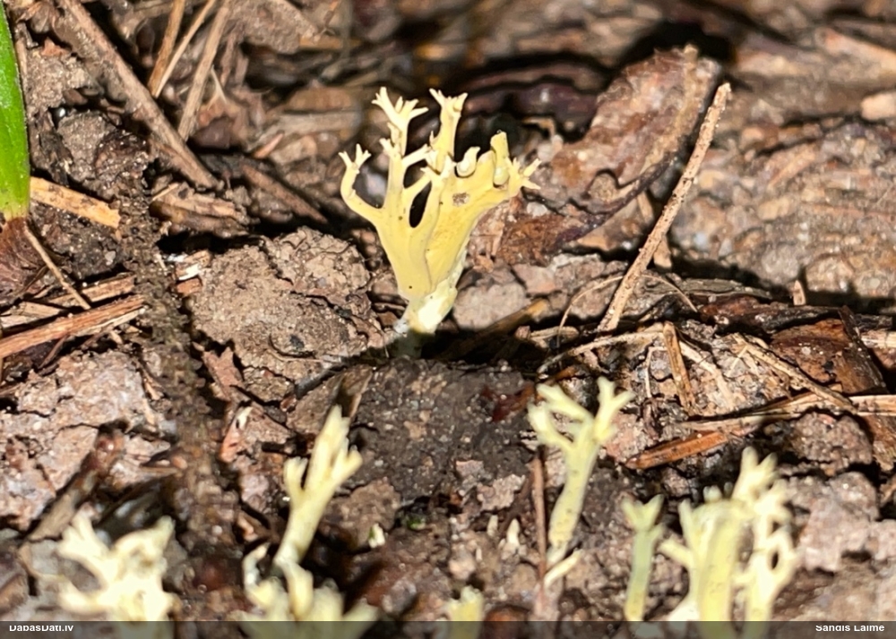 Raivo, nebūs Chaenotheca furfuracea, bet gan C.brachypoda (dabisku mežu indikatorsuga). C.furfuracea ir ar izteiktu laponi, daudz lielāki aķ un košāk zaļa krāsa