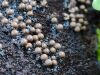 Šīs varētu būt jaunas pumpurītes (Physarum sp.) vai lampītes (Lamproderma sp.)