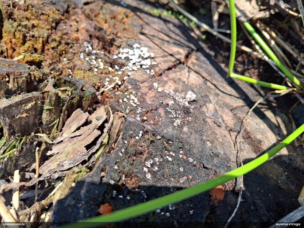 Taisnība gan, micēlija virspusē. Šis samtainais, velvetam līdzīgais micēlija tīklojums ir novērojams uz ilglaicīgi noturīgām, sveķainām eglēm, relatīvi bieži. Mans izlases apjoms gan konkrētajā gadījumā ir n=1. Noteikti ieteiktu rūpīgi pārlūkot publikāciju, kurā suga aprakstīta. Tur ir pievienoti izteiksmīgi dzīvotnes attēli. Veiksmes atrast sugu!