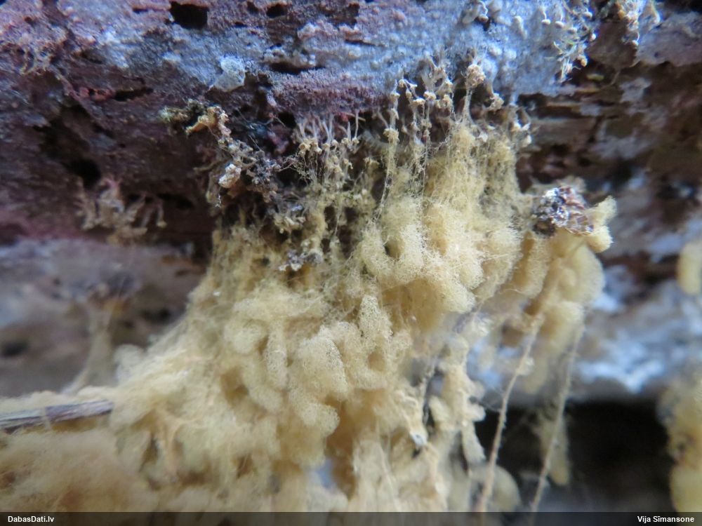 Nu vai tad šis nav Sorocybe resinae micēlijs, uz kura mēdz augt gļotsēne?