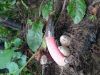 Rūtiņa ir 1mm, par kājiņu es arī nevaru saprast - drīzāk nav nekā ir :) Nobriedušas ir netīri pelēkbaltas ar ļoti trauslu perīdiju. Pagaidām daivās neplaisā, grūti pateikt, kā plaisā, ja nepieskaras augļķermeņiem. "Kraukšķīgs perīdijs", tas ir kā? Pie mazākā pieskāriena tas saplīst gabaliņos, bet vai kraukšķ? :) Sarkans nav, iekšpuse perīdijam balta, bet pskatīšos vēl.