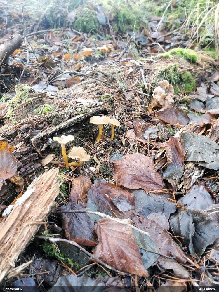 Gada sēnes 2025 sezonu noslēdzot: gan sakomunicējis pašu novērotāju, gan apsekojis uz vietas, pārliecinājos, ka tā tiešām ir 2021. gada atradne (DabasDatos nav ieziņota), tikai "aizbraukusi" par 100+ metriem uz ziemeļaustrumiem no patiesās vietas. Četras dienas vēlāk to, man klātesot, novērojis Raivo Ivulāns un ieziņojis DabasDatos (https://dabasdati.lv/lv/observation/i6u8b1t1411oup15o8nbroneg6/) jau PAREIZAJĀ vietā (taču piezīmēs ģeogr. platuma skaitliskajā vērtībā ir drukas kļūda, kuras dēļ atradne iznāktu nobīdīta par 5½ km tieši uz dienvidiem).