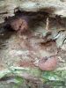 Rūtiņa ir 1mm, par kājiņu es arī nevaru saprast - drīzāk nav nekā ir :) Nobriedušas ir netīri pelēkbaltas ar ļoti trauslu perīdiju. Pagaidām daivās neplaisā, grūti pateikt, kā plaisā, ja nepieskaras augļķermeņiem. "Kraukšķīgs perīdijs", tas ir kā? Pie mazākā pieskāriena tas saplīst gabaliņos, bet vai kraukšķ? :) Sarkans nav, iekšpuse perīdijam balta, bet pskatīšos vēl.