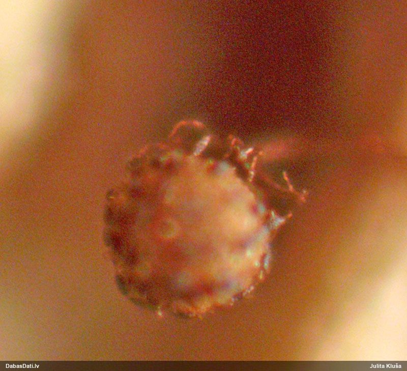 Paldies, Raivo! Ar acu gaišumu man arvien sliktāk, bet mikroskops palīdz. Jā, gribēju teikt, ka paraugam, ja vien nav kāda jutīga atradne, kurai drīkst ievākt tikai mazu gabaliņu, vērts ievākt lielāku gabalu, jo gļotsēnēm patīk kompānija. Un mikroskopa mazajos palielinājumos ar sānu papildus apgaismojumu ir vērts rūpīgi "izstaigāt" visu paraugu. Arī ķērpjus un interesantas sīksēnītes tā var atrast, ko dabā nepamanītu. Ar kriksītēm ir dažādi - pirmās es tā arī tikai citu sugu paraugos pamanīju, bet vēlāk redzēju arī dabā kriskīšu plantācijas - ja to ir daudz, tad var pamanīt jau dabā. Uz sūnām gan ir ekstrēms gadījums, dabā droši nepamanītu, arī eksemplāra noņemšana no sūnas nebija pārāk veiksmīga, tāpēc par noteikšanu mazliet šaubos (sporām mazliet cits tonis). Bet pagaidām citas hipotēzes nav (un konkrētā eksemplāra arī vairs ne).