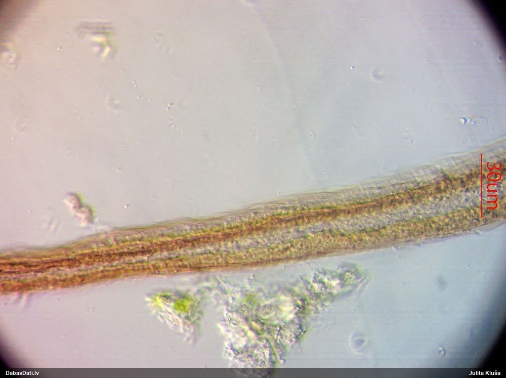 Šis man pašai sanāca pārsteigums. Ievācu paraugu ar domu "varbūt tur ir gļotsēne", dodot varbūtību apmēram pusprocentu, ka ir. Bet no mikroskopijas starp galīgi vecām sporām izdevās atrast ne tikai dažas labas, bet, galvenais, arī perfektus kapilīcija fragmentus, no kura suga, vēl kopā ar sporu pazīmēm, nosakāma nešaubīgi.