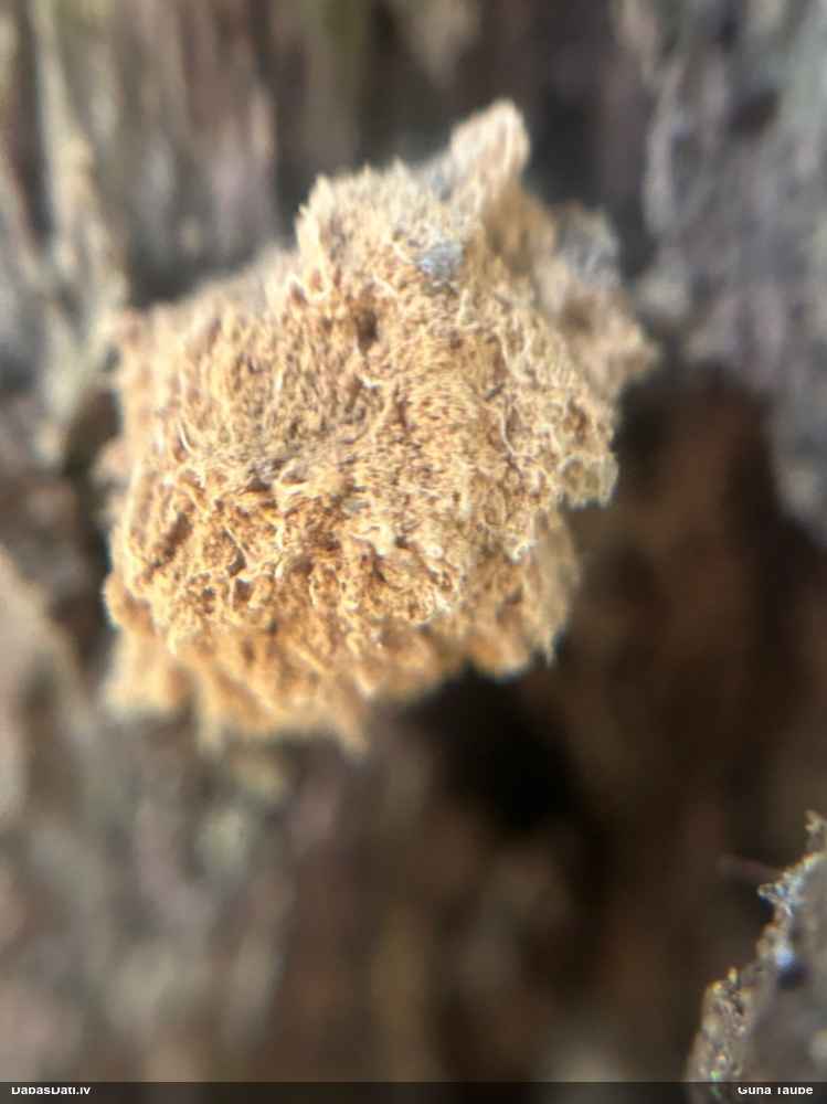 Skatoties uz nelīdzeno virsmu, var būt grubuļainais Fuligo luteonitens, bet droši to varētu pateikt mikroskopijā pēc sporām