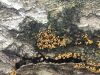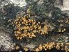 Man pēkšņi radās ideja - vai tur bija nu ļoti mitrs mikroklimats, egle ar melnalksni? Hipotētiski tādas dzeltenas var būt Diachea muscorum. Te bilde ir mazliet līdzīga: https://fr.wikipedia.org/wiki/Fichier:Craterium_muscorum,_Trawscoed,_North_Wales,_Aug_2016_-_Flickr_-_janetgraham84.jpg
