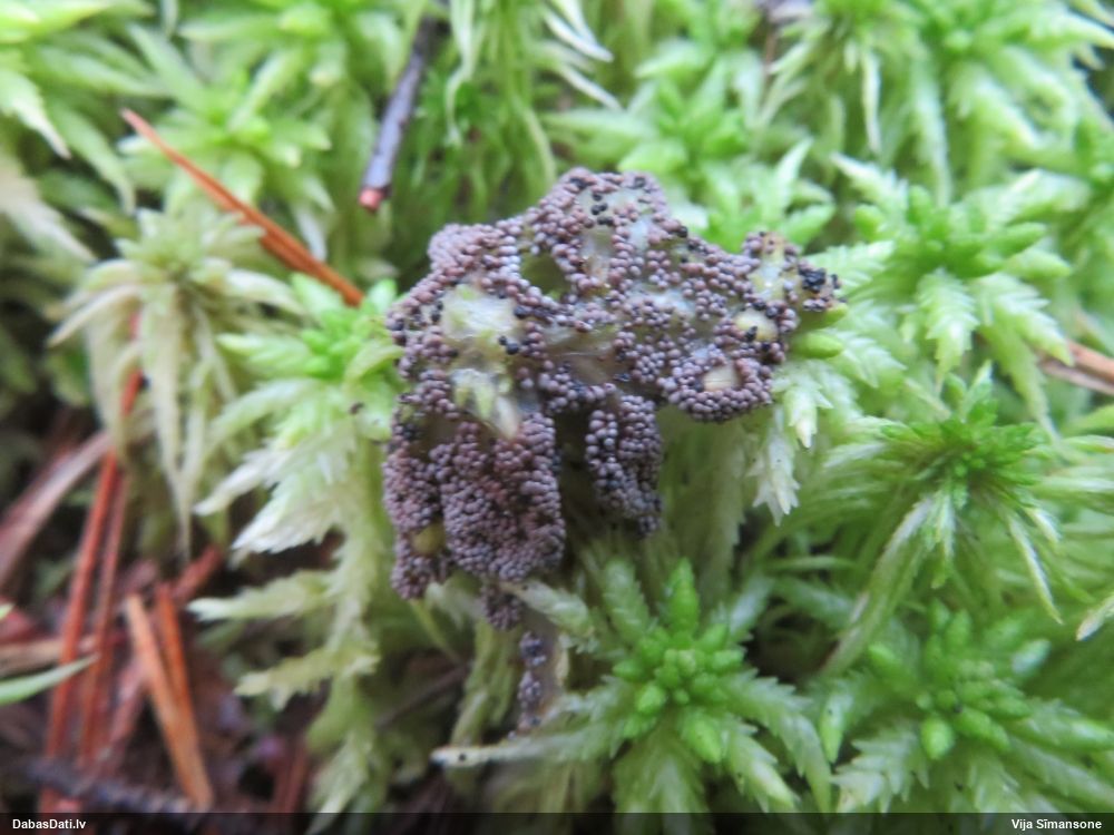 No foto īsti nevar saprast - sporas tiešām pēc gļotsēņu sporām izskatījās? Ja sēne, kāpēc tikai vienu sugu izskatīt? Svarīgākais vispirms saprast, vai sporu izskats ir gļotsēnīgs vai sēnīgs. Tiešām ir tīkliņš? Es ar savu redzi varu arī neredzēt, bet nu saskatīt no raksta es nevaru vispār neko. Avenes man īsti arī neatgādina. Nelasot diskusiju, izdomāju, ka jābūt sēnei. Kā saka - atbilde slēpjas iekšās :). Ja gļotsēne - kāds ir kapilīcijs?