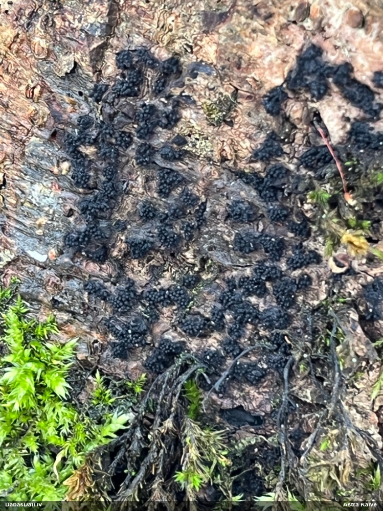 Foto saskatāms, ka izveidojušās sīkas bumbiņas kā grubulīši. Ragansviestiem tā neveidojas. Ja nav kaut kas nezināms superrets, tad ticamākā versija skujkoku mežā uz sūnām ir zaļganās pumpurītes plazmodijs ar jaunu augļķermeņu aizmetņiem