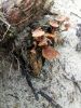 Skujkoks nav par tuvumā. Ir tikai lapu koki - lazda, kastanis, ābelītes. Otrpus celmam (D pusē) lejasdaļā, ko pamanīju pirmo, arī bija kaut kas no šim līdzīga, bet tik izsporojies, ka palicis tikai paliels brūns sporu pleķis. Intriga pavērot nākamgad.