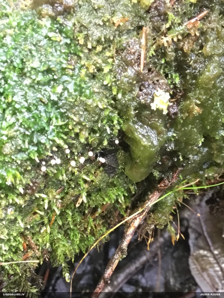 Jā, auga uz sūnām krietni apaugušas kritalas, kolumella apm1/3 no galviņas diametra, galviņas diametrs ap 1mm. Kājiņa praktiski nav, izskatās, ka galviņa "sēž" uz sakaltuša plazmodija pārpalikuma. Sporas varu vēl pārmērīt, varūt kāda būs 9mkm, bet mazāk gan šķiet ka nē.