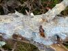 Atradu arī šo paraudziņu, pašā kastes apakšā. Perfekti notīrīta pakājes plēksnīte uz koksnes, viss pārējais ragansviests pārvērsts smalkā pulverī. Izdevās atrast arī nebojātas sporas.