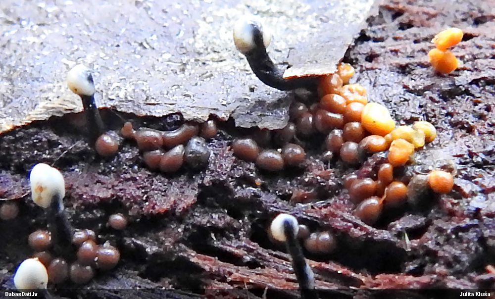 Domāju to Sorocybe resinae, ja tā, tad esmu soli tuvāk mērķim, nu zinu, kā izskatās un kur meklēt. Gļotsēnītes klāt gan nebija.