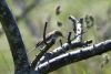 Šis interesants. Uz sausām priedes kritalām rozā mazi līdzīga izskata augļķermeņi maijā aug divām citādi atšķirīgām sugām (dažādās dzimtās) - melnajai plaispikai Amaurochaete atra un trauslajam gļotpūpēdim Reticularia jurana. Pēc sīkām mikropazīmēm (foto nav redzama pat ne sīka balta pakāje ap augļķermeni, un uz virsmas ar lielu piepūli var ja ne saskatīt, tad iztēloties tīklotu virsmas rakstu) izšķīros par biežāko no abām - melno plaispiku, kas tipiski aug samērā atklātās, skrajās vietās, t.sk. nesenos izcirtumos.