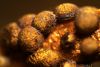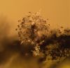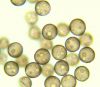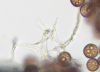 Šis bij pārsteigums. Ievācu bez cerībām, jo sakaltis. Hipotēze par gļotsēni, jo gļotaina apmale. Tā kā balts, sporu nebūs, neko zaudēt nevar, ielēju kastītē ūdeni (pat ne salvetes, vnk "dzīvu ūdeni") un aizmirsu. Krāmējoties pa kastītēm, atveru un - pārsteigums. Plānotā gļotsēne izaugusi 100x lielāka :D un izrādās sēne, kas mitrumā beidzot uzbriedusi. Kā tādu mikroskopēt, gan nezinu, jo tur tak receklis.. Tā ka vai pēdējie 2 mikro-foto par tēmu - nezinu.