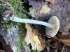 Ļoti neparasta kombinācija - īsa melna kājiņa un apaļīgi plakana galviņa. Un uz nobirām. Gļotsēņu atslēga kā cerīgāko piedāvā nabas jāņodzīti, bet tai neredzu "nabiņu" un nobirām arī nav raksturīga. Šķirstot noteicēju, visas līdzīgās atduras pret pēcsniedzītēm, kas gluži nevarētu būt :D Olītēm melnas kājiņas nav tipiskas (ja tiešām melna), tad paliek lampītes. Par garkājas lampīti (kā blakus) vismaz pagaidām šo nosaukt grūti ;) Atliek cerēt, ka nobriedīs tiktāl, lai mistēriju izdotos atrisināt :)