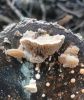 Skujkoks nav par tuvumā. Ir tikai lapu koki - lazda, kastanis, ābelītes. Otrpus celmam (D pusē) lejasdaļā, ko pamanīju pirmo, arī bija kaut kas no šim līdzīga, bet tik izsporojies, ka palicis tikai paliels brūns sporu pleķis. Intriga pavērot nākamgad.