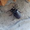 Jāredz tuvāk (kaut vai izkadrēts šis pats attēls) - varbūt tumšā eļļasvabole (Meloe proscarabaeus)