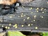 Kaut kas interesants :) Rudenī gļotsēnes attīstās lēnāk. Un ne vienmēr var uzminēt, kad tās ir gatavas sporu stadijai, resp., kā organizēt mitrumu. Vai šobrīd tiek mitrināts un viņas redz "dienas gaismu"? Iespējams, tās ir kādas olītes (Diderma). Reizēm tās pietiek palikt zem siltas lampas, un tās acu priekšā (sekunžu laikā) nobriest, maina krāsu, apvalciņš saplaisā un viss gatavs. Reizēm tā var sabojāt paraugu ;) Ja paraugs liels, var paeksperimentēt ar daļu, mēģinot pasildīt. Vēl pēc pāris dienām, ja nekas nemainītos, man droši vien beigtos pacietība, un es tādu pašu "iemestu mikroskopā", ja nu brieduma pietiek noteikšanai.