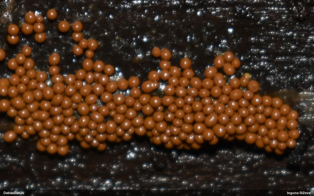 Julitas, šai paņemts paraugs, diezgan izsporojies. Un tai otrai līdzīgajai, kam ieziņots novērojums, arī. Pārliecinājos, ka tiešām egles kritalas. Bet tādu gļotsēņu diezgan daudz, vai uz katras egles kritalas, daudzās vietās stumbram, tagad dzeltenos sporu mākoņus labi redz.