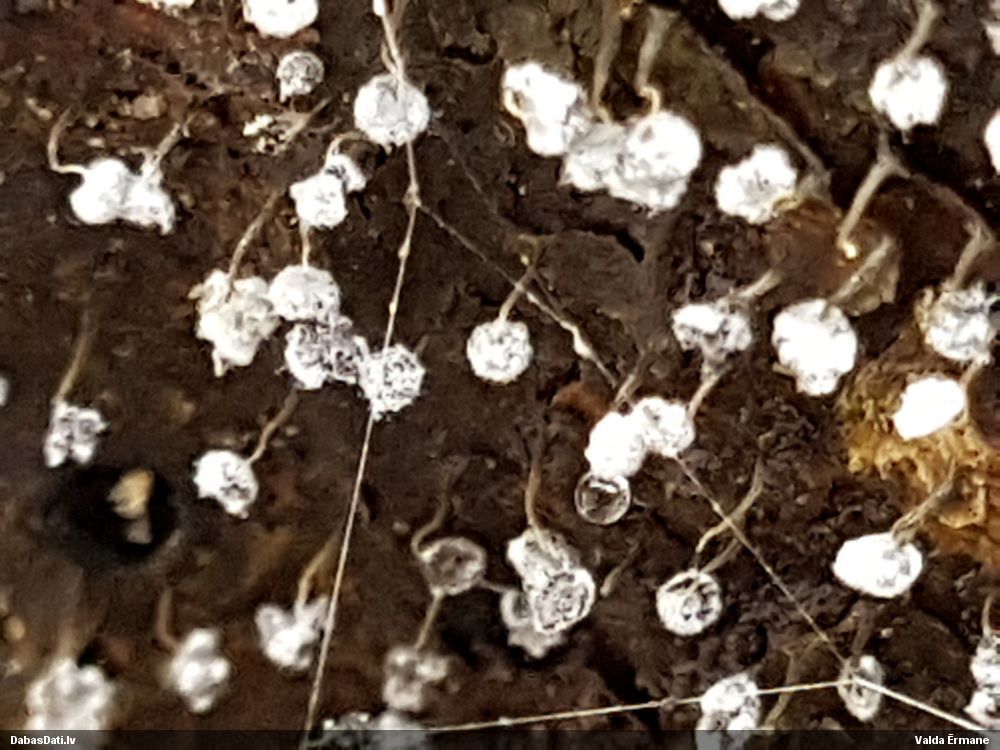 Mazie dzīves prieciņi! :) Lūk, pie kā noved cilvēku iedvesmošana uz gļotsēņošanu, nepieciešamas tikai pareizi iestatītas un sugu redzošas acis. Paraugs tika ķidāts ar pietāti, vēl ir pietiekami daudz materiāla. Atrašanai noteikti jāizmanto 40x lupa ar gaismiņu, bez tās neiztikt. Konkrētā sveķainā egle atšķīrās no visām pārējām, bija noliekusies 45 grādu lenķī, pasargāta no tiešiem nokrišņiem. Īpaša uzmanība jāvelta samtaini melnajam micēlijam, ar ko noklātas senas sveķainas rētas. Ja tiek ieraudzīti gļotsēnes augļķermeņi, tad viss uzreiz kļūst skaidrs. Tie ir pietiekami izteiksmīgi. Novēlu veiksmes visiem, kuri vēlas šo būtni ieraudzīt savām acīm! Vakar pārskatīju arī citas DMB audzes, tomēr bez sekmēm. Tomēr prasības pret dzīvotni nav gluži izšķirošas, Dānijā atrasta arī stādītās mono-audzēs. Jāturpina meklēt retās sugas :)