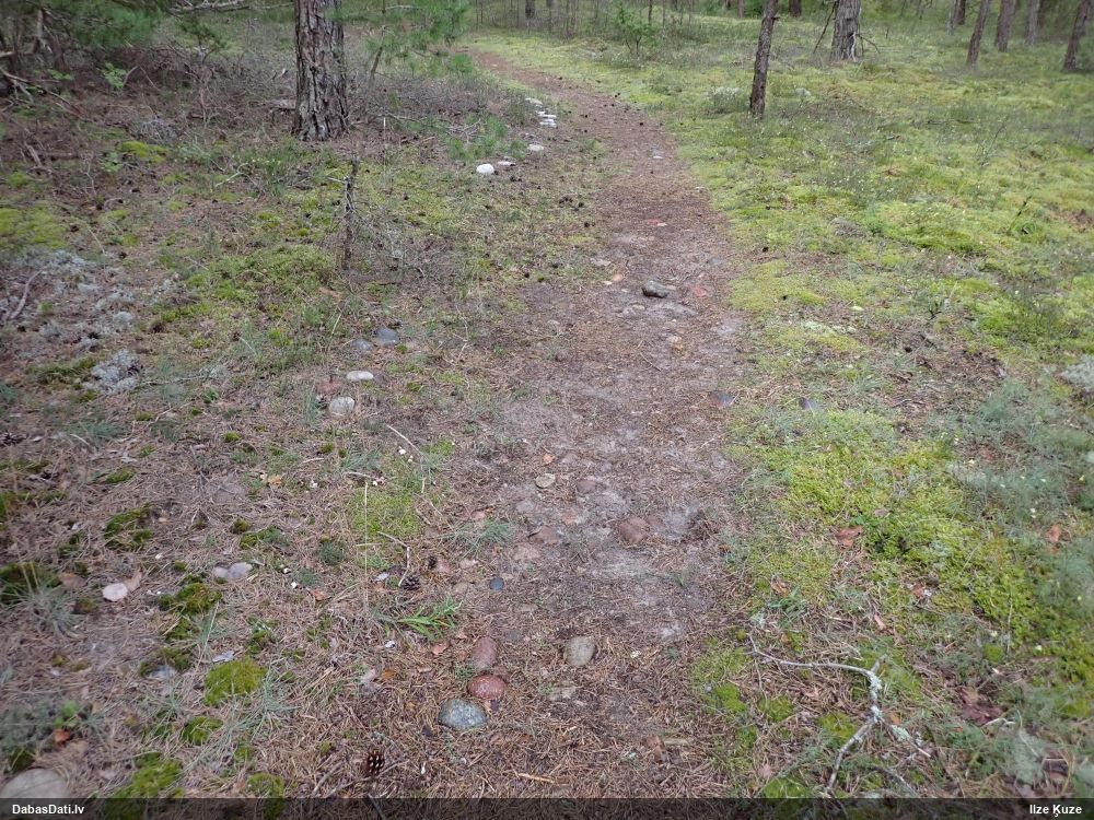 Piezīmes/1-3 cm platas; abpus taciņai mežainās piejūras kāpās; ir paraugs